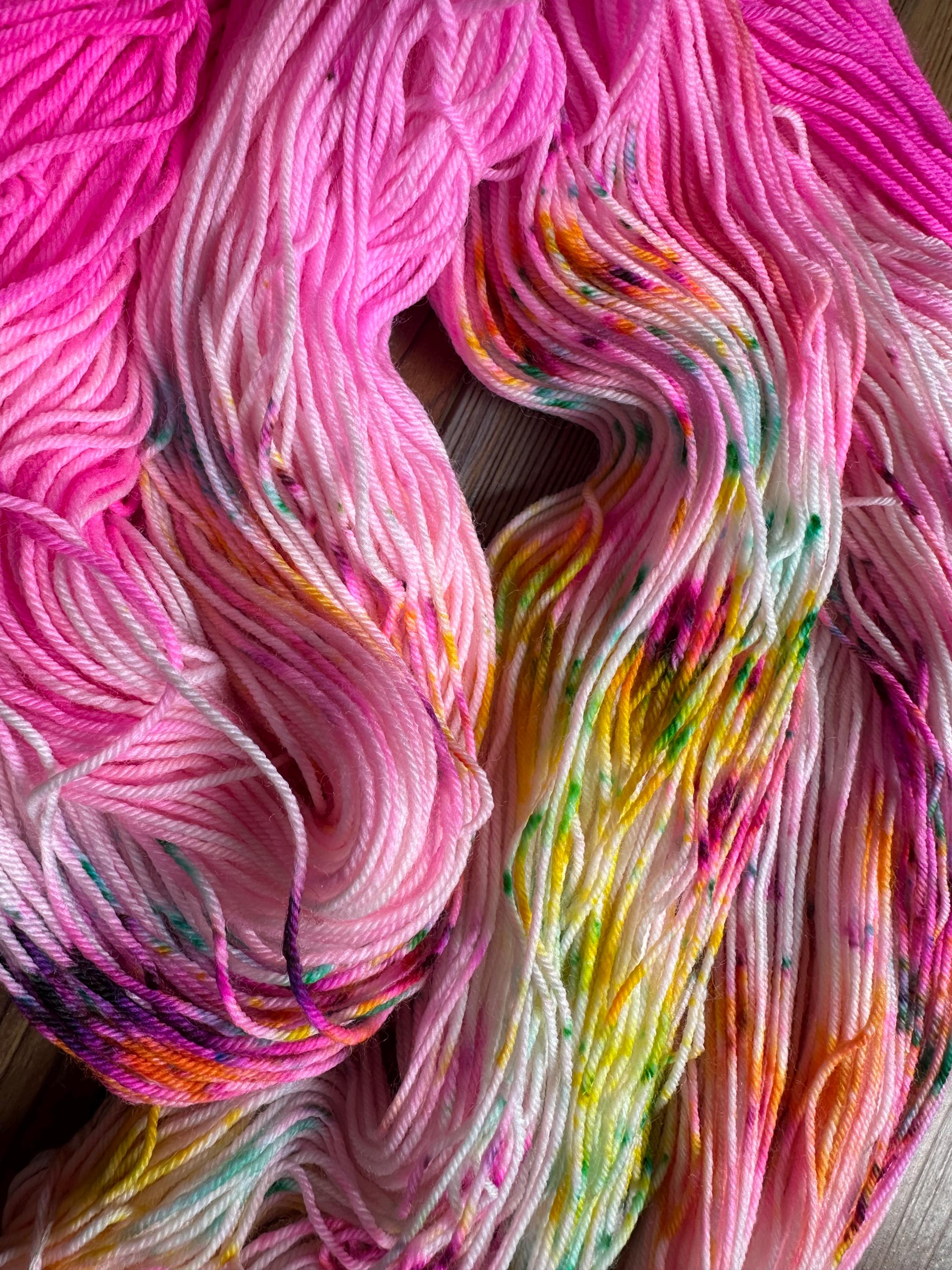 Prickyly Pink is a burst of bright and soft pink speckled with flecks of green, blue yellow and purple.