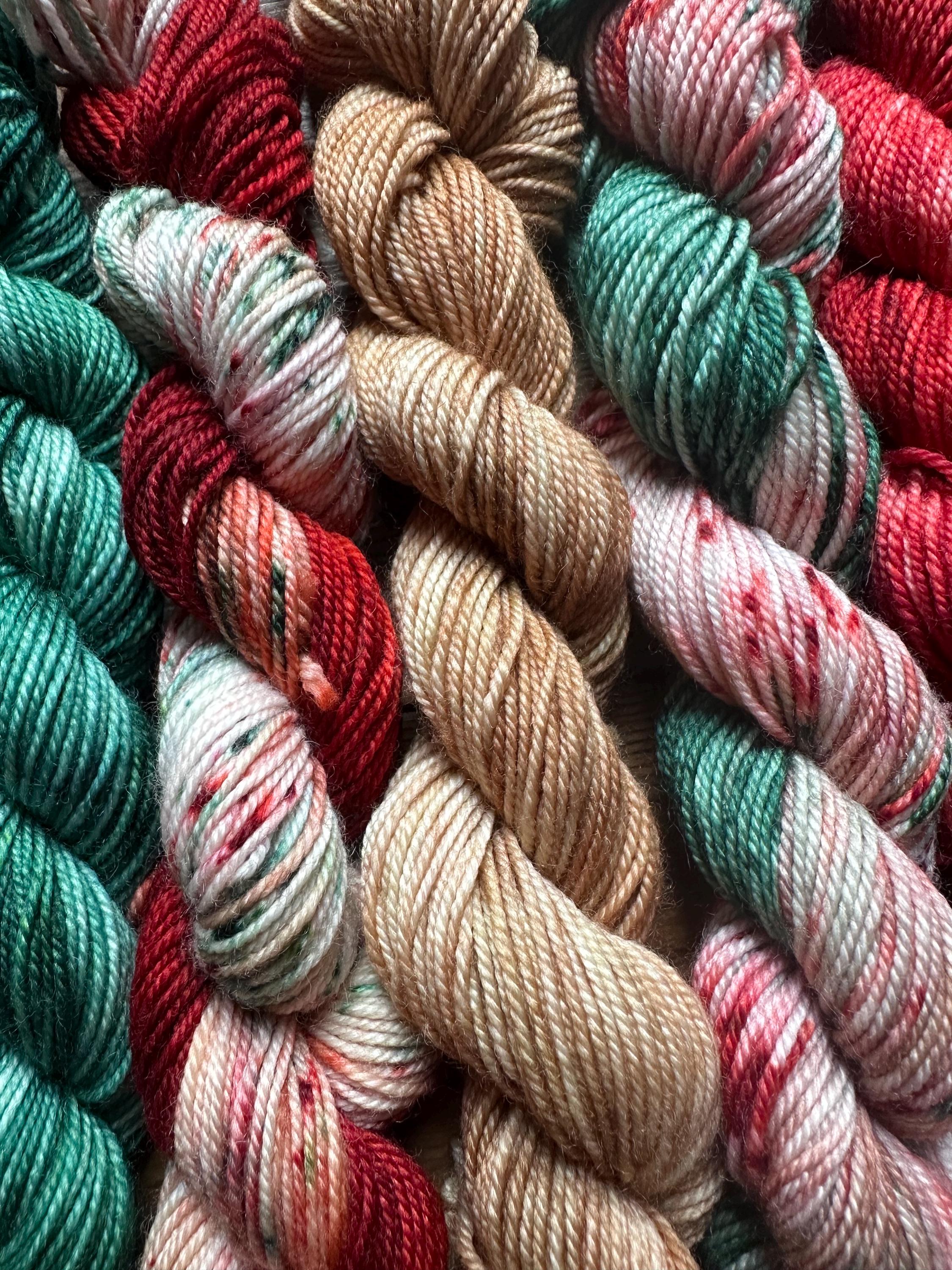 Hand Dyed Merino Wool Sock Yarn: Christmas Speckled wool yarn 75 merino/25 nylon hand dyed yarn, Minnie skein set, sock set