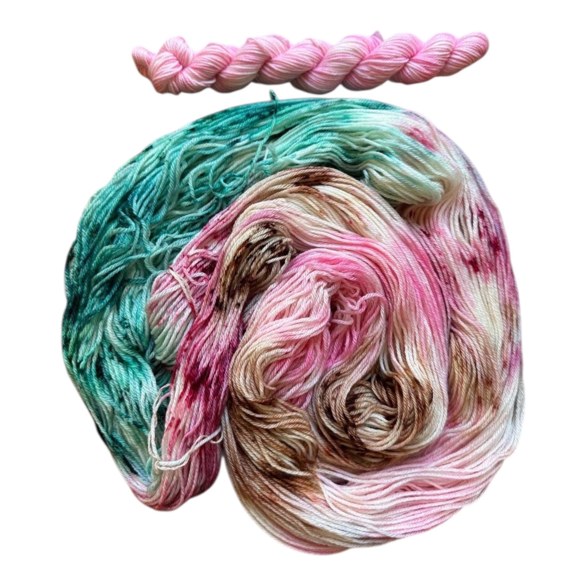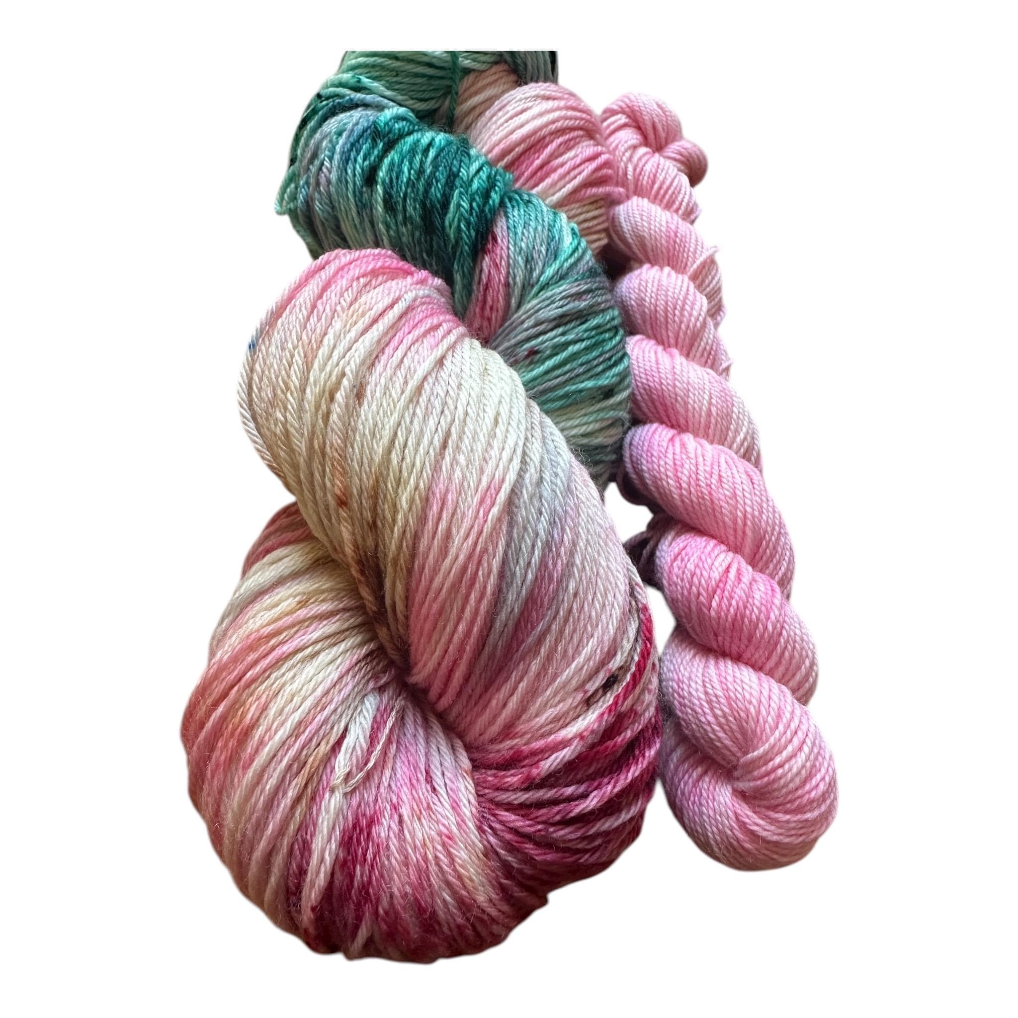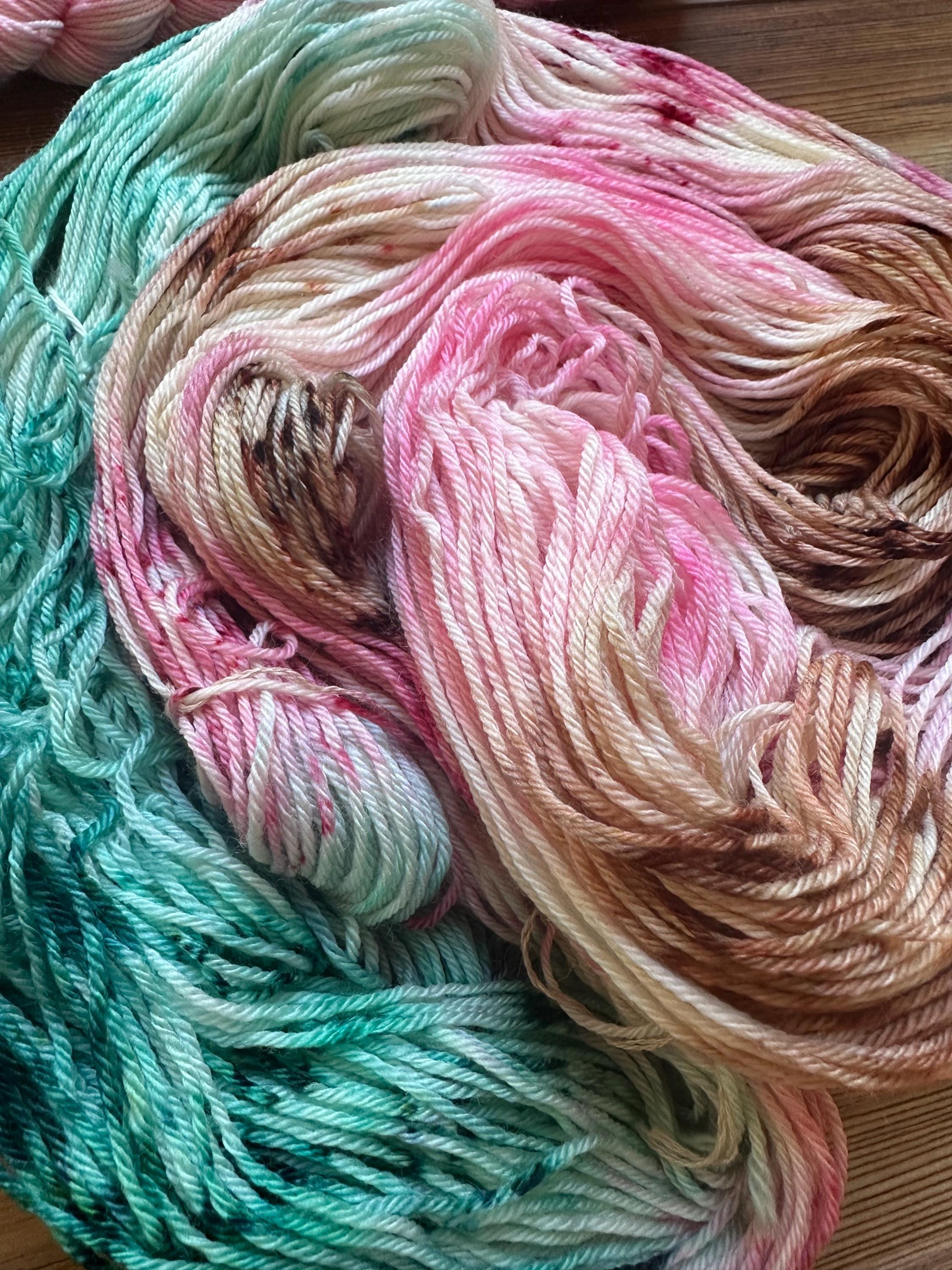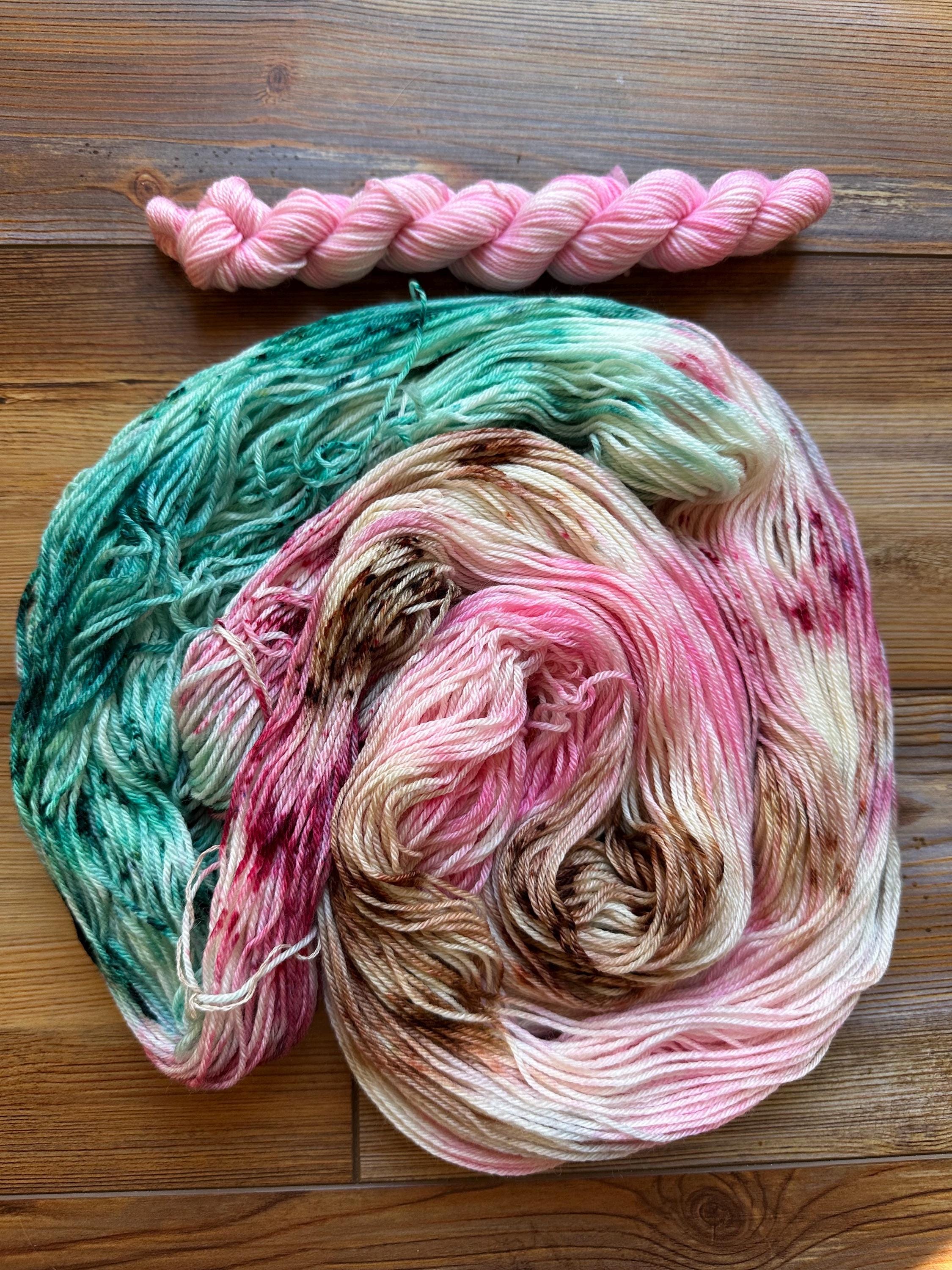 Hand Dyed Merino Wool Sock Yarn: pink green spring Speckled wool yarn 75 merino/25 nylon hand dyed yarn