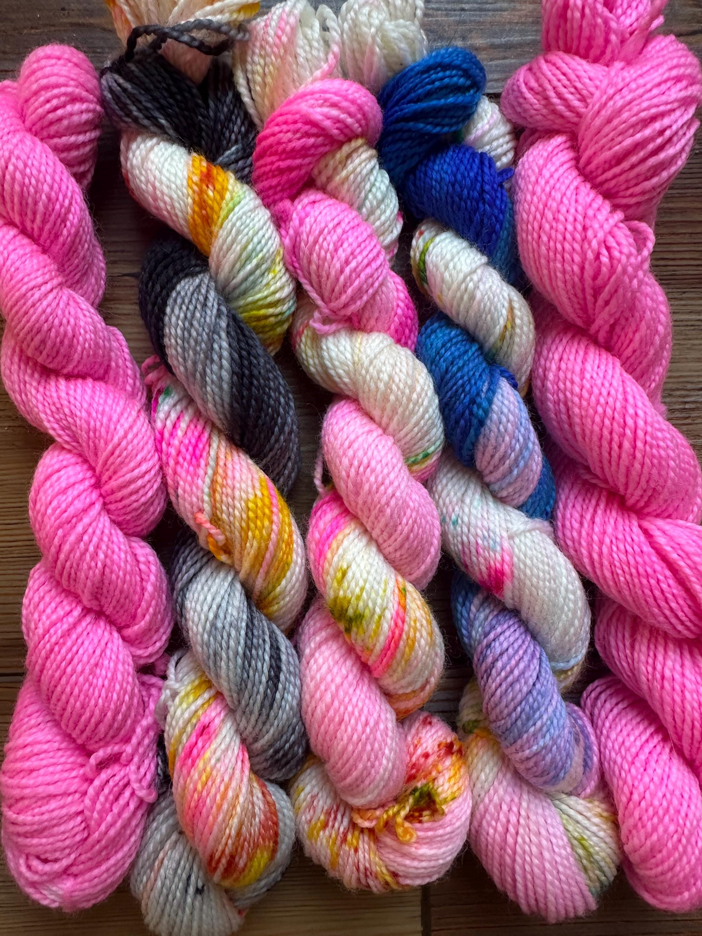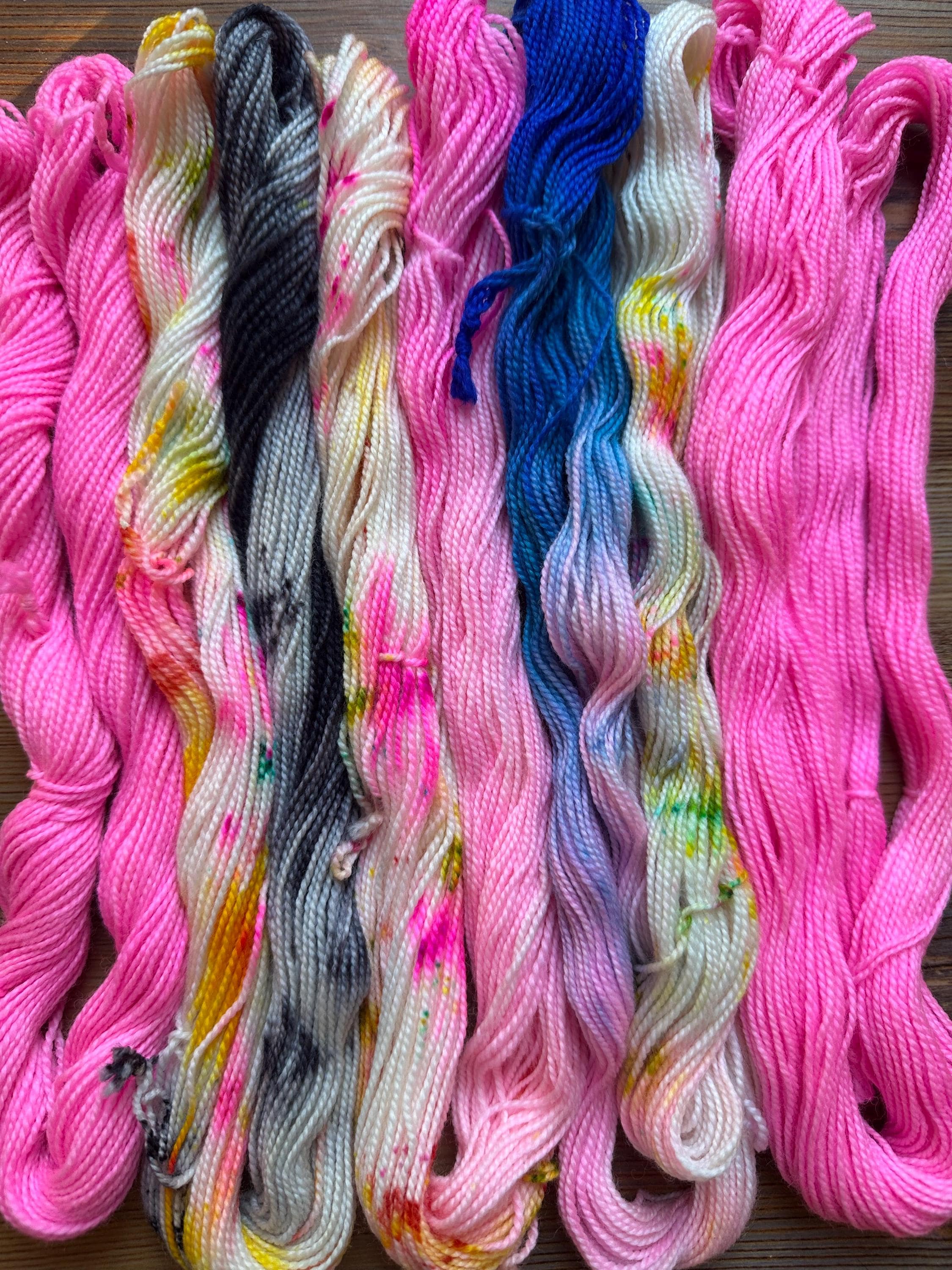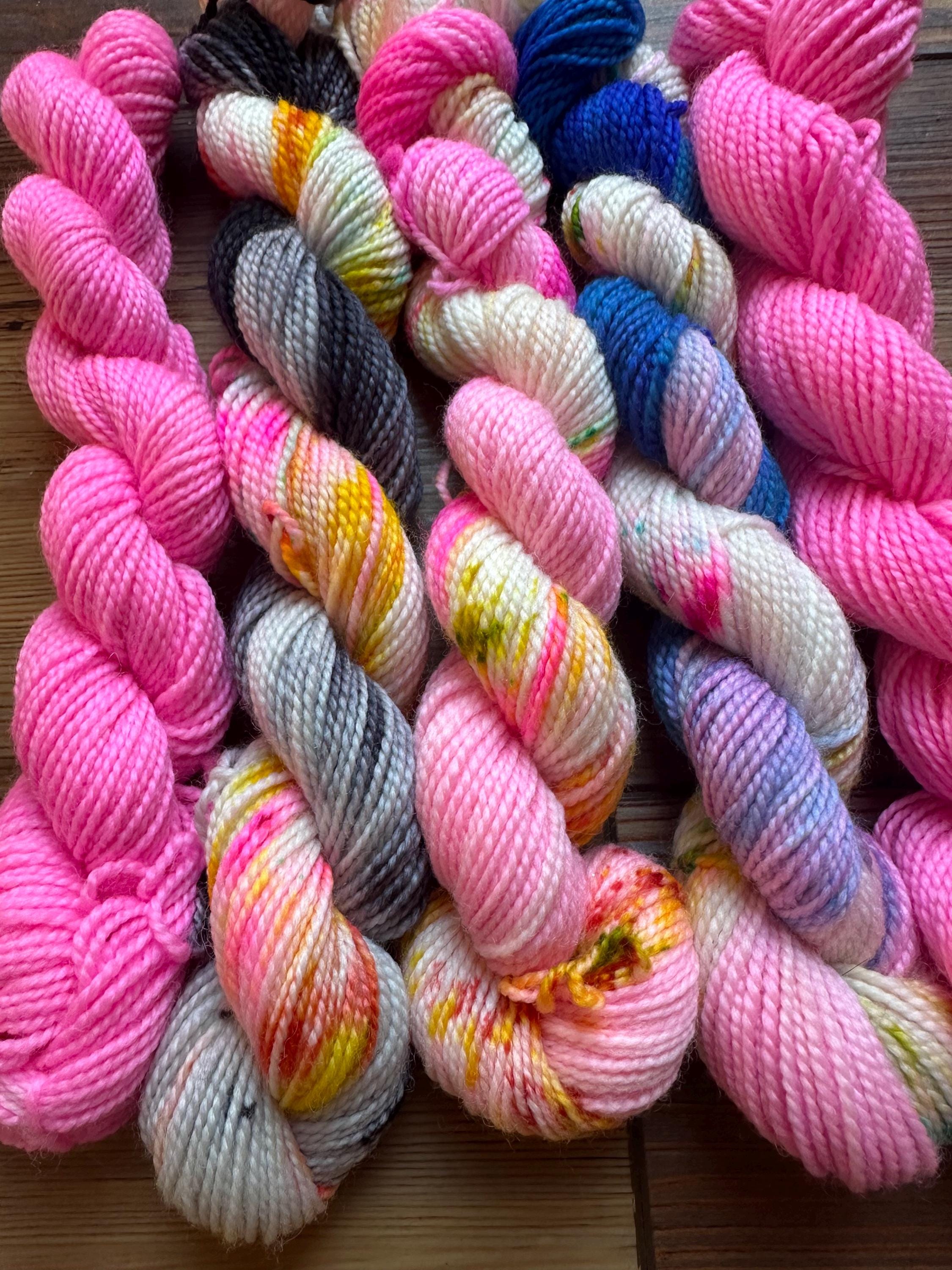 As I dye in small batches of 4-5 per dye bath, please expect some variation from skein to skein (even within the same batch), as each skein is individually hand painted. I carefully attempt to take photos that accurately represent each colorway correctly, however color and intensity may vary with your monitor settings.