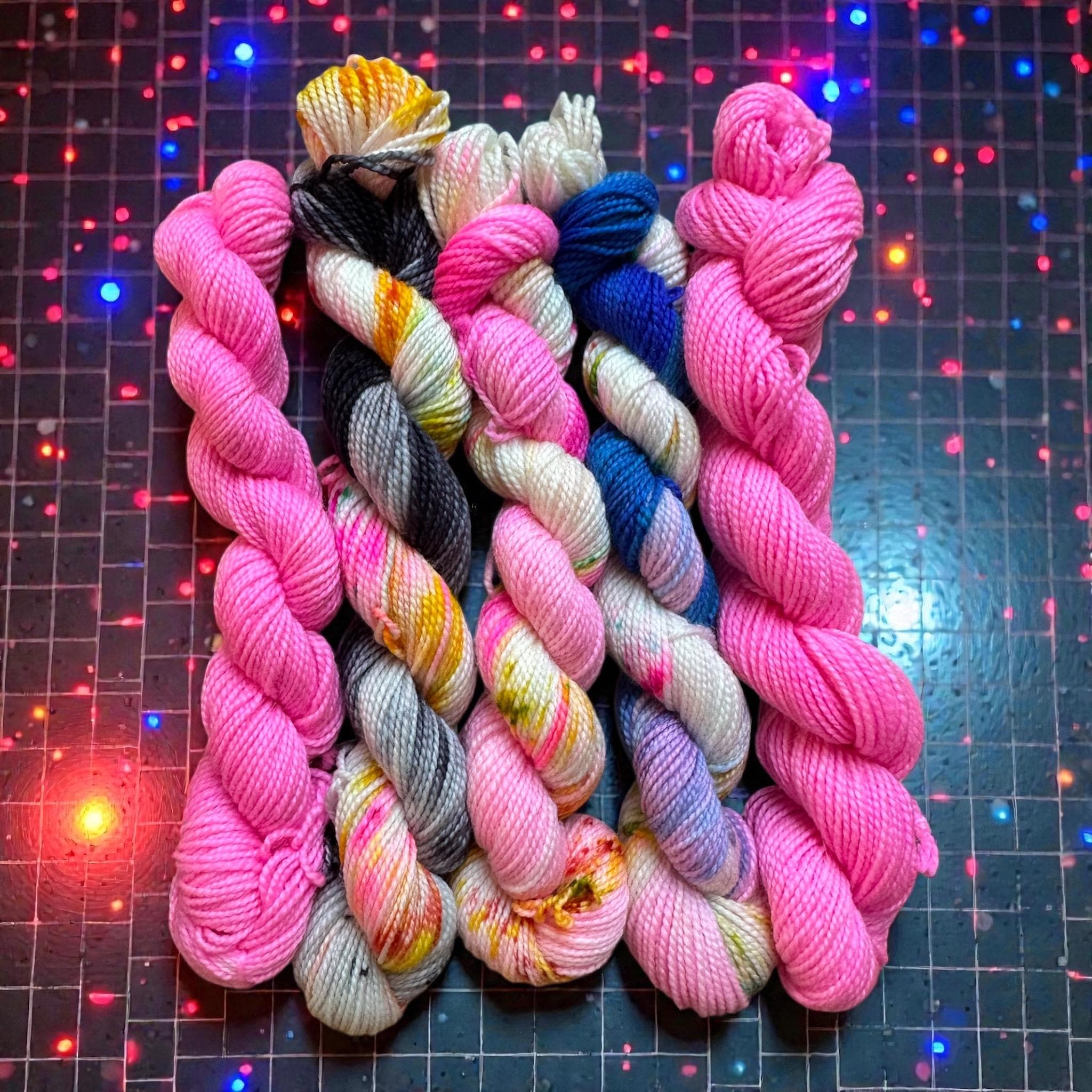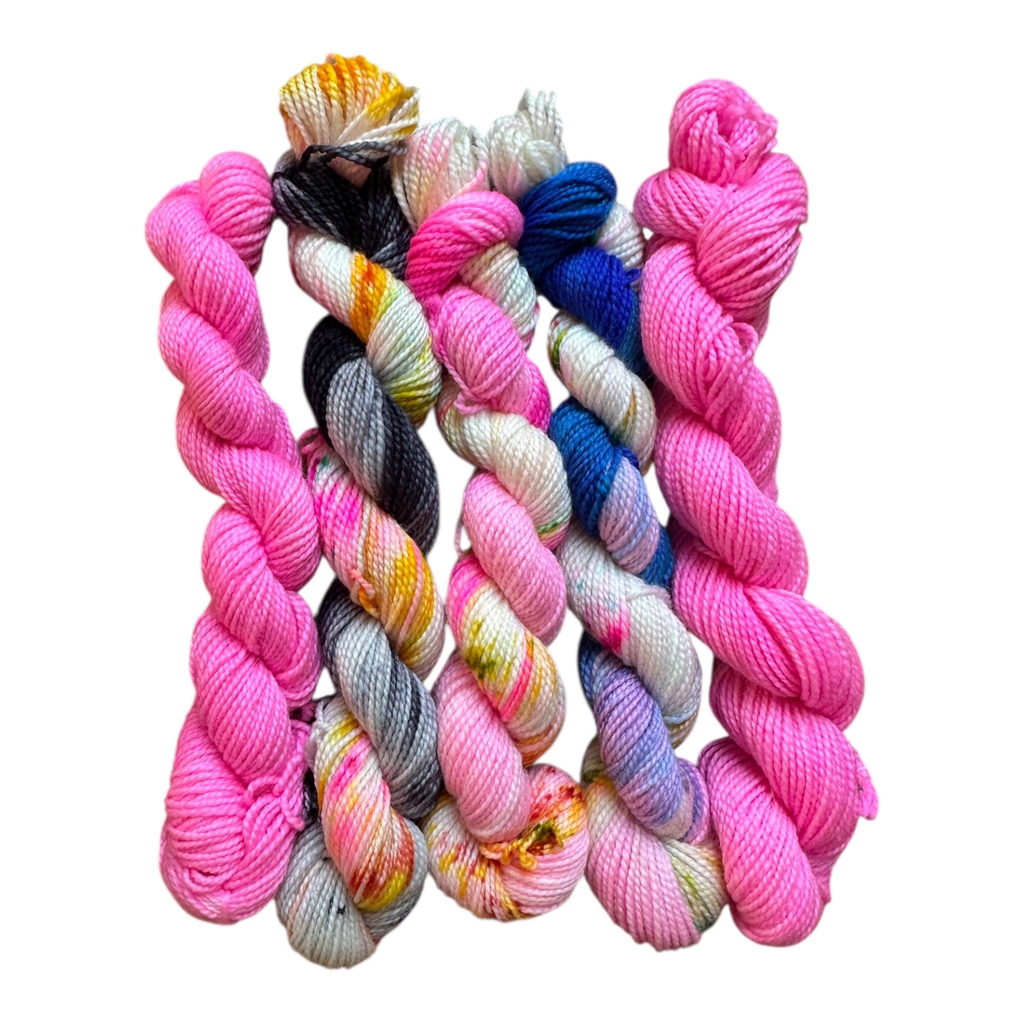 Hand Dyed Merino Wool Sock Yarn Set: Speckled Black Rainbow, 5 Mini Skeins
