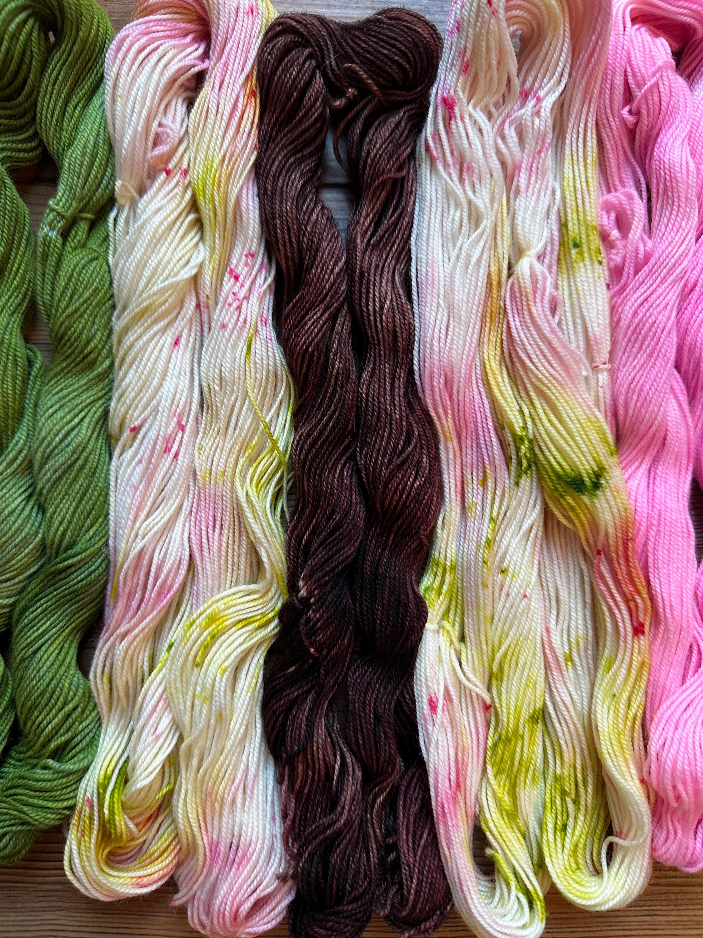 As I dye in small batches of 4-5 per dye bath, please expect some variation from skein to skein (even within the same batch), as each skein is individually hand painted. I carefully attempt to take photos that accurately represent each colorway correctly, however color and intensity may vary with your monitor settings.