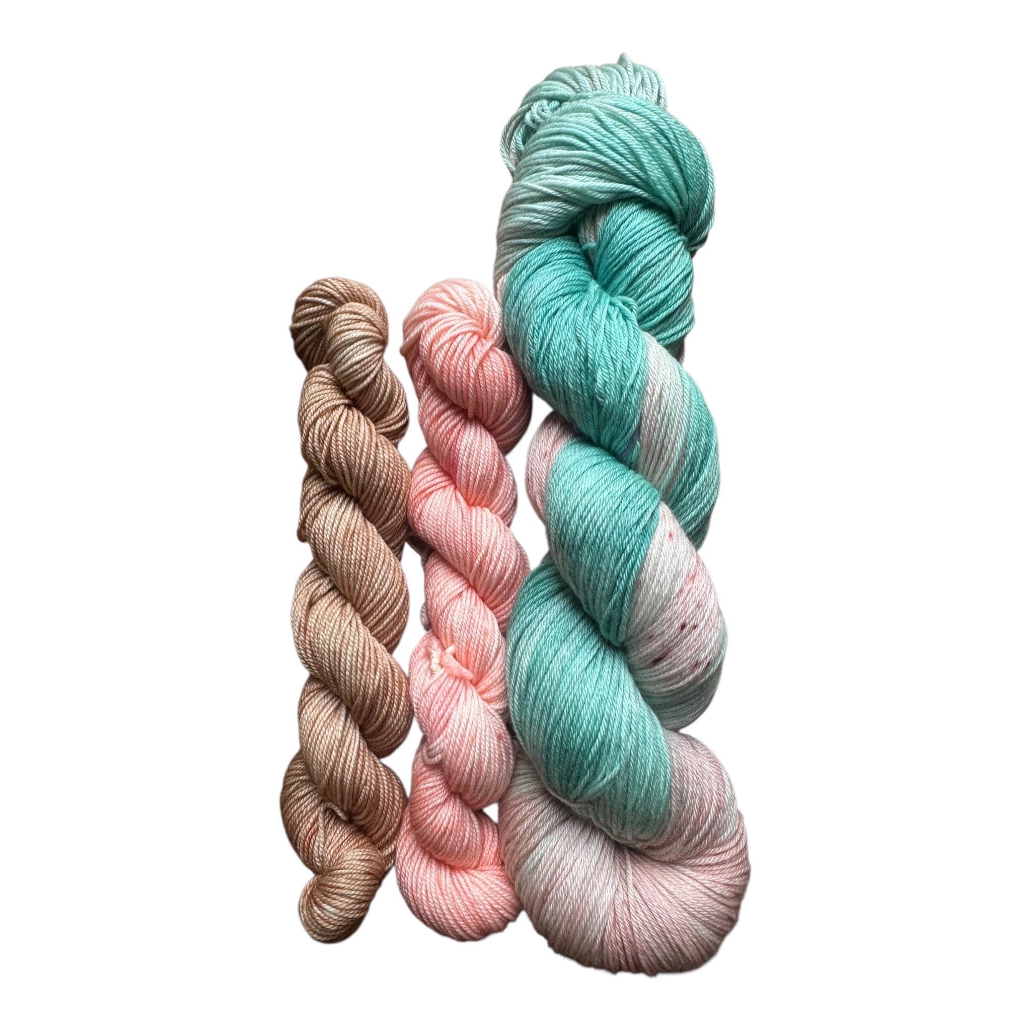 3 skein Sock Set. You will receive one full skein and two bonus mini skeins.