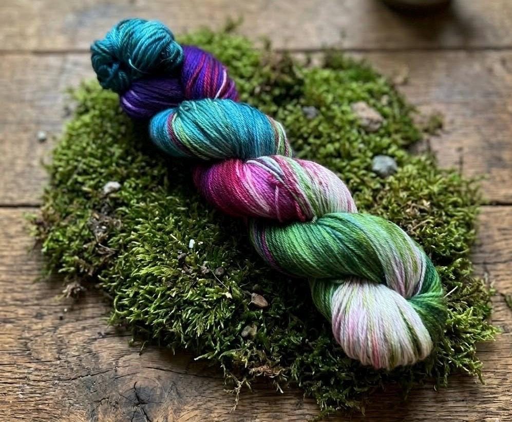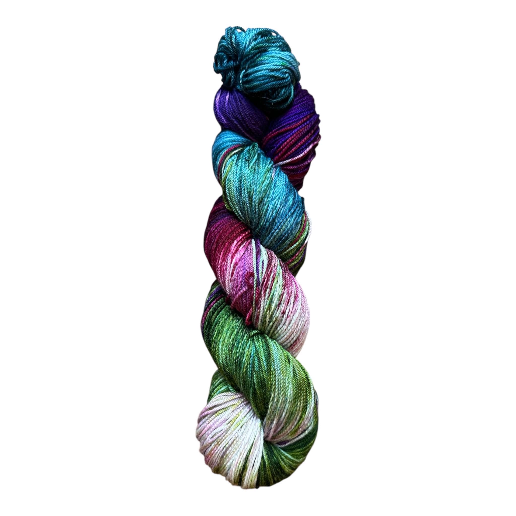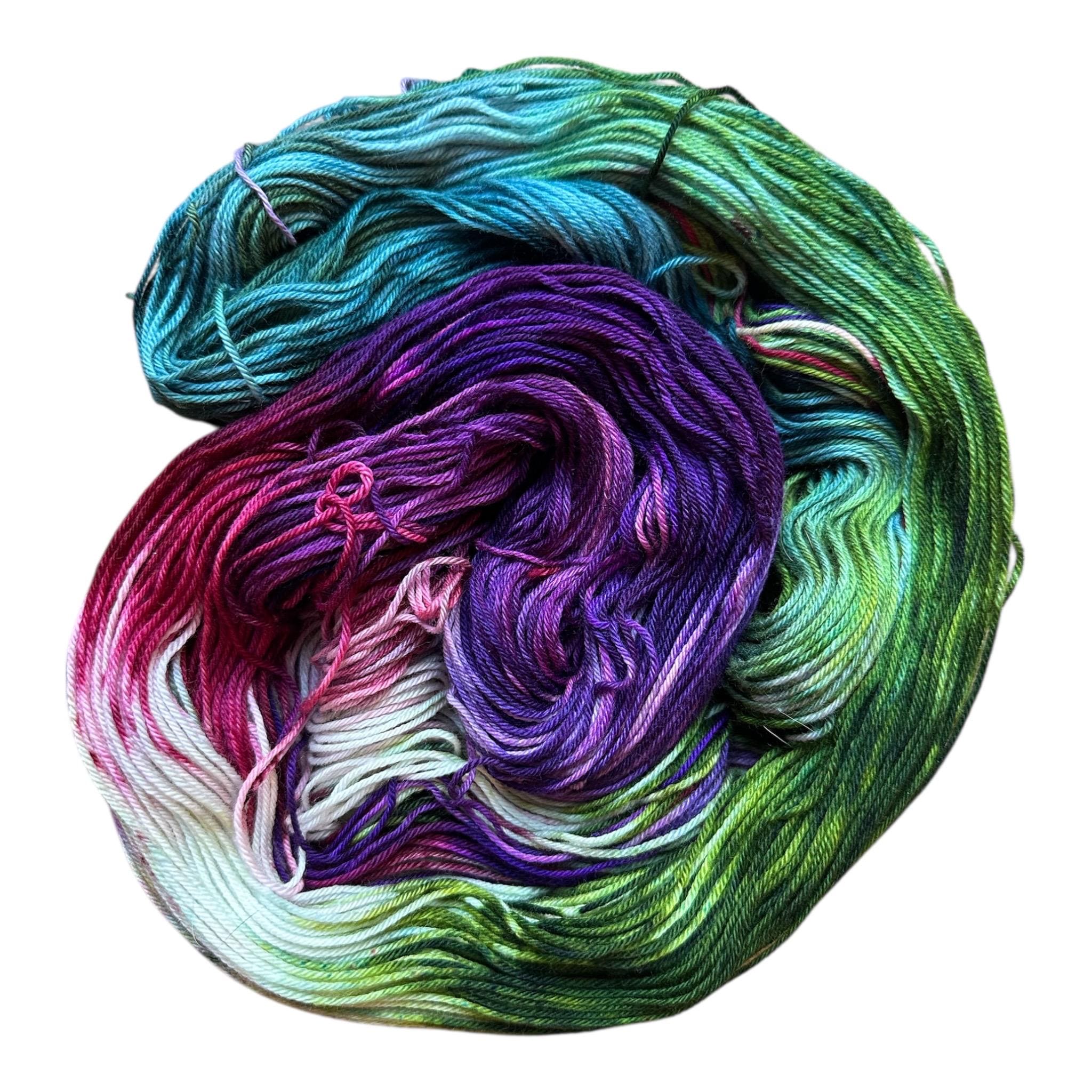 Hand Dyed Merino Wool Yarn , purple, green, blue, pink, fingering, worsted, dk, sock yarn , Mystic Garden